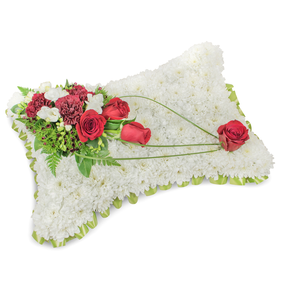Express your deepest emotions with our unique and elegant flower arrangement. This beautiful bouquet features white chrysanthemums, rich red roses, fragrant white freesias, dark red carnations, dianthus, and bear grass, carefully arranged to create a stunning and harmonious display.